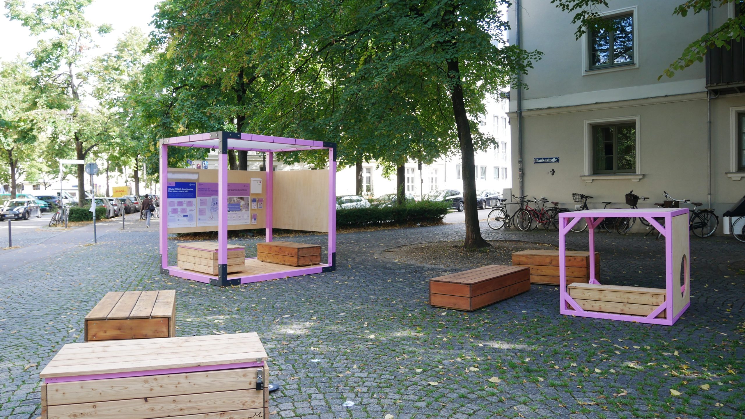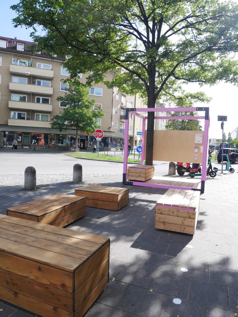 Dafür haben wir die sogenannten Dialogpunkte gebaut. Diese sind Orte der Begegnung, sowohl zwischen der Nachbarschaft als auch zwischen Nachbarschaft und Stadt. Denn so können neue Ideen für das zukunftsfähige Quartier entstehen und gesammelt werden. Doch auch jetzt bieten die Dialogpunkte schon ein kleines bisschen mehr an Aufenthaltsqualität im Viertel, ob durch Sitzgelegenheiten, Hochbeete, Fahrradstation oder Tischtennisplatte. Wir haben die Möbel an vier Standorten aufgebaut: